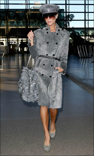 你雷死我了!許久不見的維多利亞·貝克漢姆,一出現(xiàn)就把我們雷了個人仰馬翻。3月5日的維多利亞身穿這身高級女軍官裝扮走出了機(jī)場,軍官大衣勉強(qiáng)可以用帥氣來形容,但是這頂帽子。。。真的是無語配上維多利亞的黑面還有那個不搭調(diào)的花瓣書包,維多利亞就算想體現(xiàn)自己的女王氣質(zhì),但是也不用這樣吧,就算今年軍裝樣式的外衣還是流行,可是也不能配上這樣的帽子。這樣走在路上還是T型臺啊。