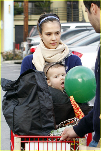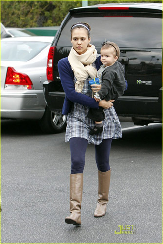 杰西卡·阿爾芭的甜美一向是毋庸置疑的,3月15日杰西卡·阿爾芭帶著女兒和丈夫一起去超市買東西,當天的杰西卡·阿爾芭身穿藍色褲襪配藍色格子外裙,頭帶藍色發(fā)卡,而手中的小美妞則是改黑色系搭配,黑色小褲子配黑色小鞋頭帶黑色發(fā)卡,看來母女都愛發(fā)卡啊。