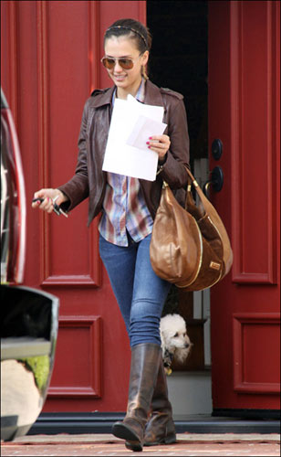 甜美媽媽杰西卡·阿爾芭一直是我們街拍和追隨的焦點,但是每一次呢她的手里都抱著自己的小美妞,這次杰西卡·阿爾芭獨自出現(xiàn),脫去了圍巾換上了酷酷帥氣的棕色皮質(zhì)機車服,里面搭配了格子襯衫,下面則是穿上了棕色的高靴,棕色的墨鏡,配上甜美的面孔,帥氣中帶著甜美,實在是太好看了,各位MM們,我們也要學(xué)這樣的搭配哦。