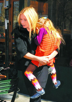 昨天,奧斯卡影后格溫妮斯·帕特洛帶著女兒和兒子,到紐約的“Build-a-Bear”玩具店為孩子們選購(gòu)?fù)婢。突然發(fā)現(xiàn)狗仔偷拍,格溫妮斯低頭垂下金發(fā)遮擋自己的臉,女兒則偎依在她懷中,用手死命捂住自己的臉。