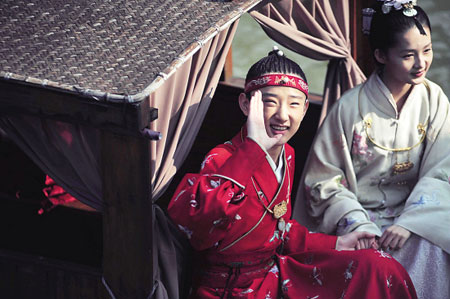 在這個(gè)問(wèn)題上,造型設(shè)計(jì)葉錦添可算是有先見(jiàn)之明,據(jù)說(shuō)給小寶玉設(shè)計(jì)的戲服,里面的縫正好夠他長(zhǎng)個(gè)兒。但是即便如此,于小彤還是露著腳踝!