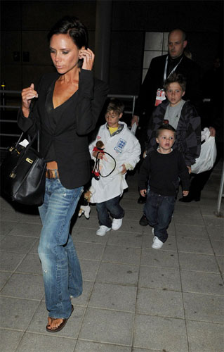 最近有傳聞和婆婆因?yàn)楹⒆拥年P(guān)系不合的黑臉辣媽維多利亞·貝克漢姆上周六(3月28日)帶著自己的3個(gè)兒子,前去球場(chǎng)為老公貝克漢姆助陣,吶喊助威。