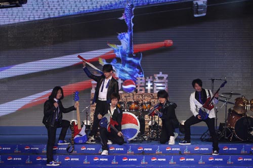 “五月天”也“禮尚往來(lái)”,將為“蓋世群音”百事樂(lè)隊(duì)大賽所特別創(chuàng)作的主題曲之全亞洲首唱奉獻(xiàn)給百事可樂(lè)及現(xiàn)場(chǎng)的所有觀眾。