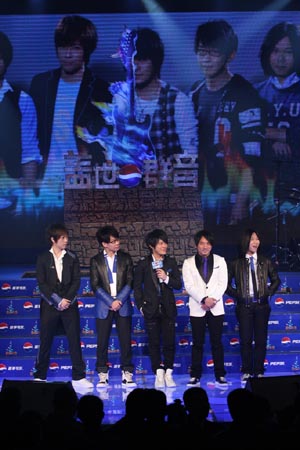 中新網(wǎng)3月31日電 3月31日,由百事公司旗下知名品牌“百事可樂(lè)”主辦的“蓋世群音”百事樂(lè)隊(duì)大賽啟動(dòng)式新聞發(fā)布會(huì),在北京D-PARK時(shí)尚設(shè)計(jì)廣場(chǎng)登場(chǎng)。于2日前剛開(kāi)完成軍十周年演唱會(huì)的亞洲第一天團(tuán)“五月天”以“蓋世群音”百事樂(lè)隊(duì)大賽活動(dòng)大使身份接過(guò)領(lǐng)軍大旗,尋找一支有理想、有才華、會(huì)創(chuàng)作、敢突破的“明日天團(tuán)”。
