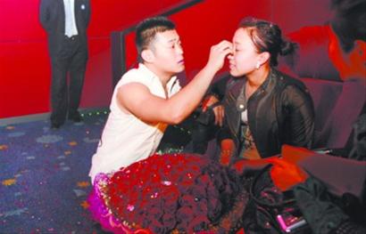 等情緒穩(wěn)定下來(lái),記者獨(dú)家專訪了毛毛。毛毛仔細(xì)回想了一下這幾天男友的表現(xiàn),說(shuō)她最近發(fā)現(xiàn)王金龍行為有點(diǎn)怪,接電話的時(shí)候總是偷偷摸摸的,她一問是誰(shuí),王金龍就隨便找個(gè)理由給搪塞過去!敖裉焖艺f(shuō)要去補(bǔ)拍婚紗照,我就覺得有點(diǎn)兒不對(duì)勁,婚紗照早就弄好了啊,為什么還拍呢?也不知道他要干什么。 ”盡管這樣,一向?qū)δ杏蜒月犛?jì)從的毛毛還是相信了男友,跟著他出了家門。毛毛說(shuō),就在大屏幕上出現(xiàn)王金龍的時(shí)候,她一下子就蒙了,怎么都不敢相信眼前的一切!拔乙郧爸辉陔娪半娨晞±锟吹竭^求婚的場(chǎng)景,我沒想到自己也能經(jīng)歷一次這么浪漫的過程。剛才我腦子里一直在想我們倆人在一起的場(chǎng)景,一幕一幕的,真的很感動(dòng)。 ”