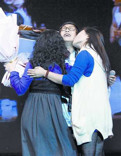 小沈陽人氣非常之高,現(xiàn)場上座率達(dá)到9成,連兩側(cè)看不到舞臺的地方都坐滿了人。主辦方透露,小沈陽的票出了8成之多,這在以往實(shí)屬罕見。大部分的觀眾都沖著小沈陽而來,前面1個半小時的表演里,大家雖然笑是笑,但是只有小沈陽走到舞臺上時,全場氣氛才為之沸騰。有粉絲上臺去獻(xiàn)花、強(qiáng)吻小沈陽,這可都是別的演員享受不到的待遇哦!老實(shí)說,小沈陽表演的確很賣力,不管是吼《死了都要愛》還是唱《大海》甚至是表演《明星與粉絲》的段落,但是在側(cè)面觀看小沈陽的表情時,記者幾次都發(fā)現(xiàn)他在拼命的眨眼睛,似乎要趕走隨時而來的睡意。
