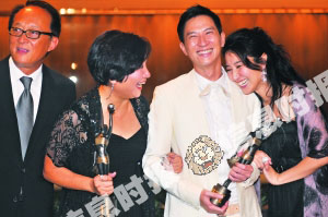 努力20年首獲影帝的張家輝,前晚表現(xiàn)風(fēng)騷,愛(ài)妻關(guān)詠荷一直緊跟其后,一臉崇拜,兩人還大方在媒體面前上演親吻秀。對(duì)于丈夫獲獎(jiǎng),關(guān)詠荷很是感慨,“他為這一天付出了多少,只有我才知道!