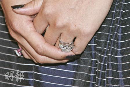 據(jù)香港《明報》報道,章子怡專程赴港參加代言活動,她穿著價值7000元(港幣,下同)的吊帶衫裙,左手無名指繼續(xù)戴上她最愛的10克拉巨型鉆戒,右手尾指亦戴上另一款巨型鉆戒,再配以鉆石手鏈大曬幸福貴氣。貴為國際影星的她,全程戴上太陽眼鏡,由她現(xiàn)身到訪問結(jié)束離開,只有10分鐘時間,而她身邊除經(jīng)理人、助手外,還有10名保安護(hù)駕,盡顯大明星風(fēng)范;顒佑谥形缗e行適值午飯時間,吸引好多市民駐足觀看。