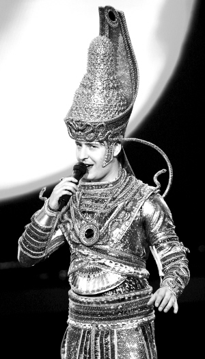 維塔斯火起來(lái)是在2000年,克里姆林宮一曲《歌劇2》,真是驚為天人。那時(shí)的他愛(ài)穿標(biāo)志性的窄身黑西裝,戴著一條紅圍巾,跨越5個(gè)八度的不可思議的海豚音,給人的感覺(jué)神秘而空靈。昨天的維塔斯卻以一身紅色的機(jī)器人服飾出場(chǎng),剛開(kāi)始的幾個(gè)高音完全聽(tīng)不出原有的清亮,眉眼也因?yàn)榘l(fā)胖而顯得模糊,依稀能看見(jiàn)個(gè)熟悉的輪廓,但魅惑的精魄已經(jīng)散去。從無(wú)字《詠嘆調(diào)》到《我的太陽(yáng)》再到《今夜無(wú)人入眠》,一首首經(jīng)典曲目在他口中變得千篇一律,而中文曲目《大海啊大!贰肚嗖馗咴方o人刻意討好的感覺(jué)。每次唱到高潮部分,維塔斯總會(huì)因?yàn)槭治枳愕付^(guò)演唱,一段段熟悉的旋律就此在他游離的眼神間劃過(guò),好像磁帶突然跳帶,讓人很不過(guò)癮。