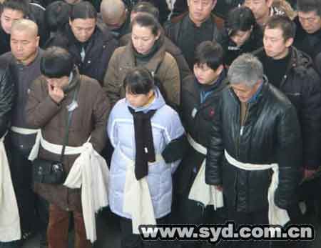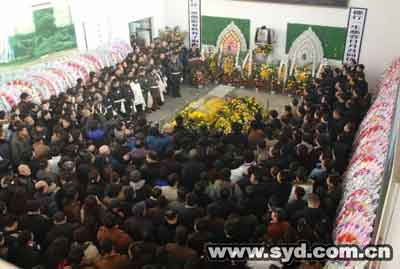 遺體告別儀式尚未開(kāi)始,殯儀館正廳里已經(jīng)擠滿了前來(lái)參加葬禮的各界人士。參加儀式的來(lái)賓有各方的親朋好友,范偉、牛群、金越、何慶魁、李靜、閻學(xué)晶、王平、李靜等文藝界明星都來(lái)到了現(xiàn)場(chǎng),宋祖英、宋丹丹、那英等沒(méi)到現(xiàn)場(chǎng)的嘉賓都送來(lái)花圈,因?yàn)橼w本山想低調(diào)些,因此很多明星趙本山都沒(méi)讓來(lái)。