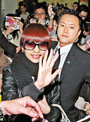 臺灣當(dāng)紅偶像唐禹哲、組合棒棒堂及楊丞琳前日先后到香港宣傳,在機場先來個人氣前哨戰(zhàn)。率先抵達(dá)的唐禹哲,獲得近50名“粉絲”蜂擁包圍。不過若論聲勢、斗排場,棒棒堂以壓倒性的姿態(tài)勝出,逾百名“粉絲”接機,即使保安人數(shù)高達(dá)20人,依然淹沒在“粉絲!敝,被摸臉及扯衣服?蓯劢讨鳁钬┝铡皦狠S”出機場,被現(xiàn)場歌迷熱情包圍,連鞋子也一度被踩丟,多少有些狼狽。