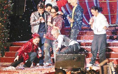 許志安、楊千嬅、何韻詩(shī)與王菀之等,在廣東道與逾萬(wàn)名市民倒數(shù)。香港太陽(yáng)報(bào)圖。