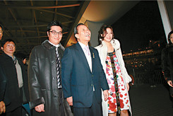 李兆基(中)與兒子(左)及兒媳一起倒數(shù)。