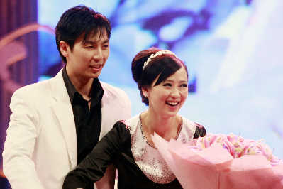 翁虹偕夫婿劉倫浩領(lǐng)取了“健康活力家庭”獎(jiǎng)。去年喜得貴子的兩人,看起來(lái)仍像熱戀時(shí)一般。這對(duì)父母極愛(ài)“獻(xiàn)寶”,不但在節(jié)目錄制時(shí)放送一段全球首播的寶寶DV,翁虹還在后臺(tái)向眾人展示手機(jī)中的寶寶照片。最近工作忙碌的翁虹抱怨:“我忙到連為家人煮一頓飯都成了奢侈的事情!彼硎緸榱苏疹櫦彝,將考慮暫時(shí)息影:“現(xiàn)在一出門工作就會(huì)想她,出來(lái)兩天就想回家。短期內(nèi)我只會(huì)接一些不會(huì)離家很久的工作,暫時(shí)沒(méi)有想要拍戲。”她還透露目前最大的目標(biāo)就是養(yǎng)好身體,再生第二胎。