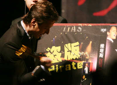 主辦方為感謝Vitas為正版音樂做出的貢獻(xiàn),在記者會(huì)上特別授予他“反盜版榮譽(yù)大使”稱號(hào)。Vitas拿起金色榔頭奮力雜碎了數(shù)張關(guān)于他的盜版專輯,還興奮地告訴記者:“我要把這個(gè)小榔頭帶到世界各地去,相信盜版商們都會(huì)感到害怕!苯裢,Vitas將在上海大舞臺(tái)舉行演唱會(huì)。其經(jīng)紀(jì)人謝爾蓋·普多夫金透露,此次演唱會(huì)上,Vitas將使出“絕招”來討好上海歌迷,此外,Vitas還會(huì)在女歌迷中選出一名幸運(yùn)者,邀請(qǐng)她上臺(tái)一起合唱。