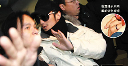 有報道稱謝霆鋒在機(jī)場現(xiàn)身時沒有戴婚戒,說明離婚傳聞確有其事,但真實(shí)情況可能并非如此。謝霆鋒很早前就說過,因?yàn)榕摹朵交ㄏ磩︿洝窌r練詠春拳太賣力,左手無名指韌帶、骨頭都斷裂受傷無法伸直,婚戒也戴不上,只好將戒指串成項(xiàng)鏈,戴在脖子上。所以他的婚戒并不是帶在手指上的。
