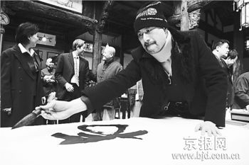 昨天,墨海飄香——群星迎春筆會(huì)在坦博藝苑舉辦,多位影視明星、書畫界元老共同參與,揮筆潑墨,其中包括著名歌唱家胡松華、李雙江、戴玉強(qiáng)等。值得一提的是,很少參加內(nèi)地書畫活動(dòng)的香港藝人也來到現(xiàn)場(chǎng),香港影視明星徐錦江揮毫潑墨,給媒體留下深刻印象。原來,這位演過“魯智深”、“鰲拜”的港星,并不是一位粗人,徐錦江畢業(yè)于廣州美術(shù)學(xué)院,是中國(guó)南派著名畫家關(guān)山月的弟子。在香港演藝圈,外表豪放的徐錦江書畫藝術(shù)水平,無人能出其右。