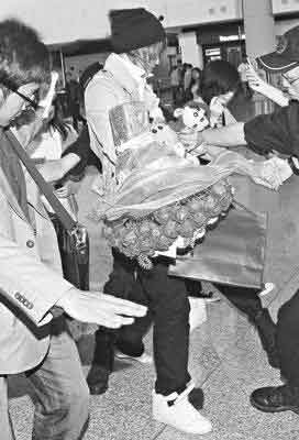 當天李準基一出機場就引發(fā)現(xiàn)場騷亂,雖有10名保安人員將李準基圍住,卻依然抵擋不了粉絲們的熱情;靵y中,李準基左腳的白色球鞋被歌迷踩掉,禮物也散落了一地,現(xiàn)場一時很尷尬。