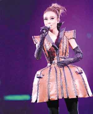 容祖兒一連4場(chǎng)《Star Light容祖兒演唱會(huì)2008 Part2》前晚在紅館落幕。在這次的4場(chǎng)演唱會(huì)中,容祖兒演繹的歌曲與今年年初舉行的演唱會(huì)大同小異,同樣以《蜃樓》來(lái)打頭陣,只是在中間部分有所改動(dòng)。此外,容祖兒的裝扮上則有較多改動(dòng),如頭上的CD飾物則變了LD大碟及增加了一條“皮箱”似的娃娃裙。