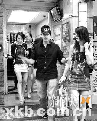天都快亮了,孫國豪終于帶著美眉們離開KTV,前后夾攻,他不見疲態(tài),嘴巴還是說個沒停。離去前表情輕松,當晚應該很幸福。