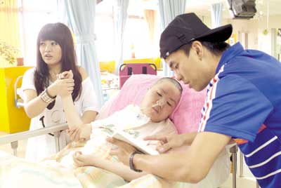 戴愛玲與柯有綸是為植物人進(jìn)行復(fù)建的工作,并與已蘇醒的植物人進(jìn)行互動(dòng)。戴愛玲為他們按摩并與他們進(jìn)行傳球游戲?掠芯]則是在一旁念《阿育王的故事》給他們聽,幫助他們思考。(記者唐雪薇)