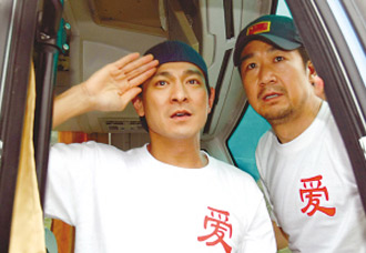 昨日中午12:50,劉德華、鄭秀文、容祖兒等一行飛抵成都雙流機場。稍后,張國立、馮小剛、陳道明等人陸續(xù)抵達。下午3點半左右,他們從成都出發(fā),趕赴離都江堰市20公里的向峨鄉(xiāng)。