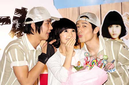 在新劇中飾演“宅女”的楊丞琳表示,她是首次飾演這樣內(nèi)斂的角色,也是一種挑戰(zhàn)。劇中,她將與飾演偶像明星的汪東城以及飾演青梅竹馬好友的胡宇崴有一段錯(cuò)綜復(fù)雜的三角戀情。問(wèn)到楊丞琳對(duì)兩個(gè)男生有什么印象,無(wú)厘頭的她竟回答:“我覺(jué)得他們一直在對(duì)我用力!彼嘎,第一次見(jiàn)到大東時(shí),她主動(dòng)找他攀談,他卻一臉酷樣不理人。對(duì)此沒(méi)印象的大東連忙澄清:“可能是我在團(tuán)里被要求?,不能講話(huà)吧!贝髺|說(shuō)他媽媽很欣賞楊丞琳:“我跟她同樣都是一出道就要幫家里背債,她已還完債并買(mǎi)了新房子,現(xiàn)在我的房貸也快還清了,正在找新房子!睏钬┝章(tīng)完馬上說(shuō):“我家那邊還有空屋,歡迎來(lái)當(dāng)我的鄰居。”