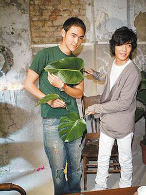 中新網(wǎng)6月19日電 因偶像劇《命中注定我愛你》暴紅的臺灣男演員阮經(jīng)天,為回報蕭敬騰曾在該劇中客串演出,前天特意留出6小時空檔,幫蕭敬騰拍新歌《奮不顧身》MV,蕭敬騰知道他將履行收視率破10要裸泳的承諾,特地探班并送2片植物,還揶揄他:“看你要遮臉還是遮下面!”阮經(jīng)天則笑答:“那要再送我1片!”