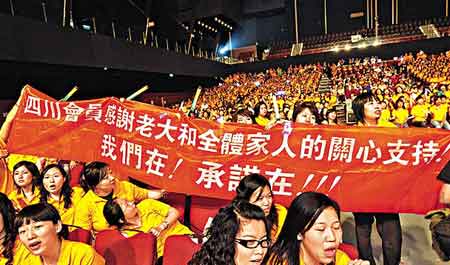 來自四川的歌迷舉起橫額,感謝華仔一直支持四川災(zāi)民。