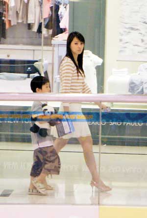 日前,伊能靜主演的新劇《三個(gè)女人的秘密》在北京殺青,從片場(chǎng)回到家中的伊能靜顧不上休息,又帶著助理和一個(gè)五六歲大的小男孩一起逛商場(chǎng)。伊能靜牽著兒子的手,高昂著頭,表情嚴(yán)肅,先逛了兩家首飾店,她看得很仔細(xì),但小哈利則顯得很不耐煩。后來(lái)伊能靜帶著兒子去了幾家兒童玩具店和文具店,最后他們一起來(lái)到商場(chǎng)里的一家餐廳吃飯。在伊能靜和兒子逛商場(chǎng)的過(guò)程中,雖然不時(shí)有人認(rèn)出她來(lái),但沒(méi)有人上前去打擾他們,因?yàn)橐聊莒o表情冰冷,步子很快,并不像是一個(gè)溫柔體貼的母親,仍然還是一副明星派頭。