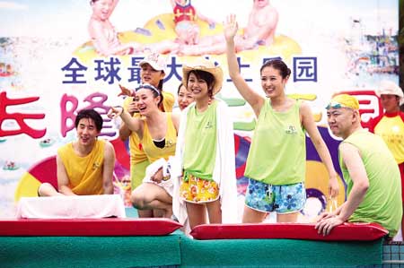 當記者們來到拍攝場地時,節(jié)目已經(jīng)開始錄制。由于下雨,現(xiàn)場看不到身穿泳衣展示身材的女明星,只看見曹穎、楊樂樂、陳西貝穿著大T恤裹著大毛巾的狼狽樣,韓國女歌手Sara脫掉了高跟鞋更顯身材矮小,不會游泳的她更要穿上救生衣,更加沒看頭。唯一比較養(yǎng)眼的是愛戴,熱褲加半截T恤,看起來還像是個明星。
