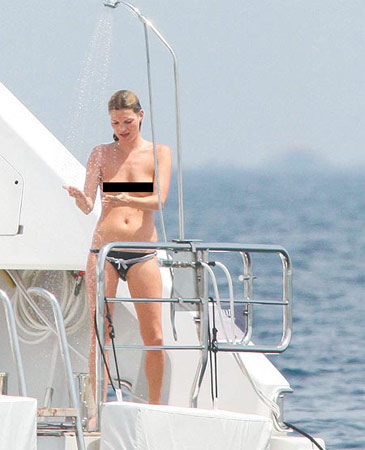 圖文:超模凱特·摩絲裸上身甲板沖涼