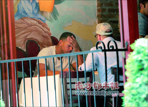 7月7日,阿里克斯和朋友吃飯,滿面愁容。