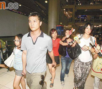 當(dāng)?shù)貢r(shí)間昨日下午5點(diǎn)左右,本報(bào)記者一行二人抵達(dá)泰國(guó)曼谷。曼谷是中國(guó)內(nèi)地和香港通向神秘國(guó)度不丹僅有的兩條途徑之一(另一條途徑是印度),幾乎所有參加這場(chǎng)婚禮的賓客都將從曼谷取道,前往不丹,因此,曼谷SU-VARNABHUMI國(guó)際機(jī)場(chǎng)成為媒體聚集之地。從下午5點(diǎn)一刻左右,直到晚上7點(diǎn)半,一共有三個(gè)來自香港的航班降落在曼谷國(guó)際機(jī)場(chǎng)。約有10名來自香港電視臺(tái)、雜志和報(bào)紙的記者,守候在機(jī)場(chǎng)的國(guó)際出口,希望能拍到哪怕是一個(gè)參加婚禮的嘉賓。一位香港無線電視臺(tái)的記者告訴本報(bào)記者,今天一整天,他們只拍到了施南生一人。而之前,在這里“守株待兔”的香港媒體已經(jīng)拍到了林青霞等貴客,而梁朝偉和劉嘉玲兩口子也被收入鏡頭。