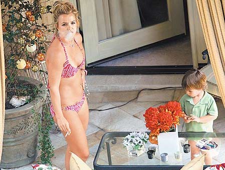 中新網(wǎng)7月22日電 “小甜甜”布蘭妮(Britney Spears)行使探視權(quán)和兒子見面,卻被拍到穿著比基尼在將滿3歲的大兒子西恩(Sean Preston)面前吞云吐霧,難怪在爭奪兩個(gè)兒子監(jiān)護(hù)權(quán)的官司中輸給前夫凱文費(fèi)德林(Kevin Federline)。