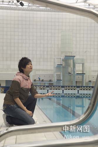 結(jié)束了專家訪談的重要環(huán)節(jié)之后,李宇春終于可以放松一下,與這個大水泡組成的新奇場館好好地親密接觸。她一會兒在泳池邊細細觀察水下的攝影裝置,一會兒跑到觀眾席體驗觀賽的新鮮感覺,此時的她顯現(xiàn)出好奇、天真的本色一面!八⒎健睍r尚的設(shè)計、舒適的環(huán)境令李宇春流連忘返,直呼這個場館“太棒了”。