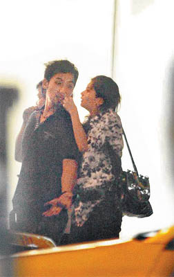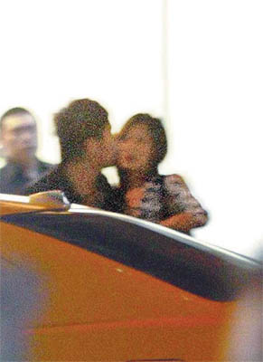 3小時(shí)后他與長腿妹離開,看來已有酒意,在路邊等車時(shí),長腿妹在大馬路上張開雙手抱他,深情對望,惹火身材直接貼上去,還在他耳朵吹氣講悄悄話,動(dòng)作挑逗,他也沒抗拒,回吻長腿妹。