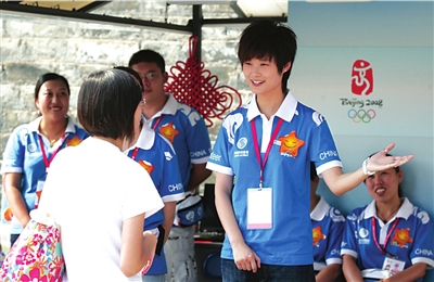 昨天,李宇春來(lái)到崇文門(mén)明城墻遺址腳下的奧運(yùn)志愿者服務(wù)站,穿上志愿者的服裝,體驗(yàn)了一回志愿者的工作。