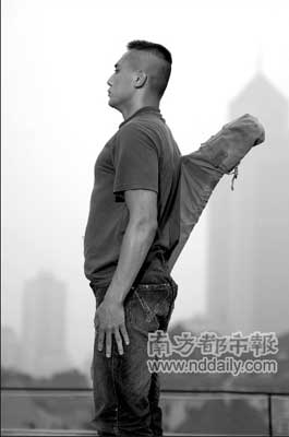 在電影里,他出演的“老三”是一位阿甘式的退伍軍人,因?yàn)榇竽X缺氧而出現(xiàn)智力障礙,在一次見(jiàn)義勇為受到表?yè)P(yáng)之后,他發(fā)現(xiàn)了擊倒壞人的快樂(lè),于是他練就了強(qiáng)壯的肌肉,并苦練凌厲的技擊術(shù)。在兩分多鐘的預(yù)告片中,劉燁一直在打人,戲里他的偶像是岳飛,他的武器是“紅纓槍”,他閑時(shí)不是唱軍歌就是唱國(guó)歌,總是“夢(mèng)想用拳頭改變世界”。