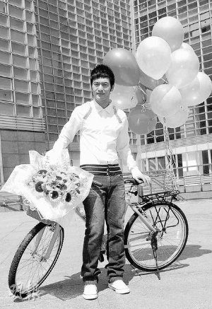 黃曉明前日在臺灣開心騎腳踏車。