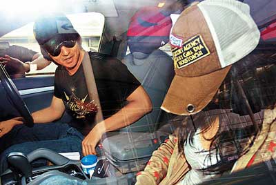 由于徐若瑄趕上機(jī),馮德倫也大力踩油直駛機(jī)場,至機(jī)場的客區(qū)時(shí),女助手先下車前往柜位辦理手續(xù),此時(shí)記者趨前拍照,徐若瑄嚇得馬上低頭以帽遮面及狂打電話,同樣戴cap帽、戴墨鏡的馮德倫表情尷尬,勉強(qiáng)擠出一絲笑容,他見徐若瑄身子不停下滑,穿的小背心領(lǐng)口松開,惟恐她走光即示意整理衣服,她即馬上拉緊外套。