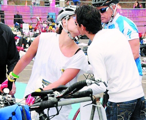 美國時間9月14日,剛生完孩子7個月的39歲歌壇天后珍妮弗·洛佩茲,完成了在馬里布舉行的三項全能運動(游泳、跑步、自行車),為慈善活動籌款。據(jù)《人物》雜志透露,洛佩茲全程耗時2小時23分28秒,沿途有不少“粉絲”為她加油助威,在自行車和跑步賽段的轉(zhuǎn)換中,其丈夫安東尼還送上熱吻鼓勵。盡管比賽中不慎扭傷踝關(guān)節(jié),洛佩茲沖過終點時,依舊露出勝利者的燦爛笑容。