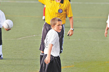 9歲的布魯克林踢球頗有貝克漢姆之風。