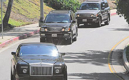 貝克漢姆開勞斯萊斯(前)接小孩,后頭還跟著2車護駕。