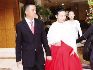 今年7月,本報獨家報道了董潔和潘粵明已經(jīng)結(jié)婚并且懷孕的消息,當(dāng)時圈內(nèi)的知情人向記者透露兩人將在10月26日舉行婚禮,但董潔和潘粵明卻在昨日悄悄在北京完婚,低調(diào)得沒有邀請圈內(nèi)的一位朋友。據(jù)現(xiàn)場的同行透露,新郎官潘粵明身穿黑色西服,打著紅色領(lǐng)帶,始終面帶微笑。由于婚禮是秘密舉行,知道的媒體很少,沒有任何明星道賀,所以現(xiàn)場顯得很安靜。兩家的親戚不到十桌人聚在一起吃飯,讓人感覺就是一對普通夫妻在結(jié)婚。一身紅色禮服的董潔披著白披肩站在潘粵明旁邊,笑得很甜蜜。