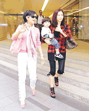 昨日下午四時許,拉姑、柏芝與兒子Lucas、謝婷婷及一名中年男子,相約到中環(huán)置地喝茶,但未見謝霆鋒同行。柏芝不時用相機(jī)幫拉姑及Lucas拍合照,而拉姑對乖孫亦疼愛有加,經(jīng)常喂Lucas吃東西,只見Lucas眼睛滴溜溜,精靈可愛,柏芝則與小姑婷婷聊個沒完。其后拉姑與Lucas在商場內(nèi)牽手散步,活潑的Lucas到處走,十分頑皮,而拉姑明知有記者守候,仍然笑容滿面,大方任人拍照,Lucas亦不畏懼鏡頭,極有加入娛樂圈的潛質(zhì)。柏芝聞言展露幸福笑容,并說:“可能我懷他的時候,被你們拍得多,這是胎教!彪x開時,拉姑親昵地對柏芝說:“兒媳婦,拜拜啦!”柏芝則依依不舍地回應(yīng):“婆婆,我走啦!” 中 中
