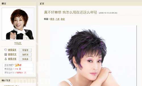10月13日凌晨,57歲的劉曉慶用一篇博文《對(duì)不起,我怎么現(xiàn)在還這么年輕》回應(yīng)整容傳聞,再三強(qiáng)調(diào)自己是“純天然”容貌。她在博客中說:自己現(xiàn)在仍然這么年輕健康、充滿活力、陽(yáng)光燦爛,好像挺對(duì)不起大家似的。