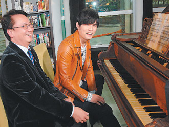 周杰倫(右)現場用鋼琴表演創(chuàng)作,令主持人李四端十分佩服。