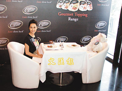 中新網(wǎng)10月22日電 據(jù)香港文匯報報道,朱茵昨日出席“西莎主人及愛犬星級盛宴”,和白威狗一起共進午餐,又親自炮制狗狗美食,一向愛狗的朱茵更早于前日就和這頭白威狗一起做訪問及拍照。