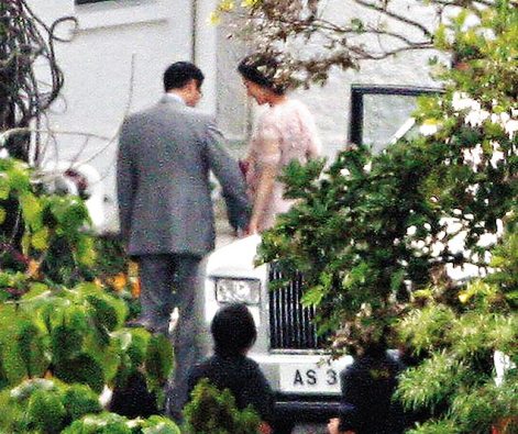 一對新人的家長分別在下午4時半到,李嘉欣的媽咪由一名男士陪同,乘坐一輛車牌XX600的奔馳房車到來,而嘉欣的滿面笑容的胞姊李嘉明,跟隨花車乘坐一輛白色七人車到達大宅,但其葡萄牙籍的父親因為與李母離異多年,與嘉欣已甚少聯(lián)絡,即使嘉欣結婚之喜也未有出席。